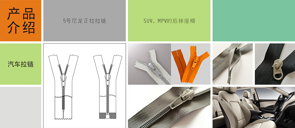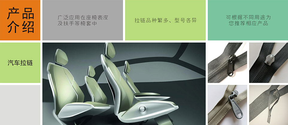 我們提供汽車專用拉鏈、標識扣、標識嘜、粘扣帶/刺毛帶,織帶/松緊帶,塑料扣件等其他汽車內飾、汽車座椅系統(tǒng)部件。